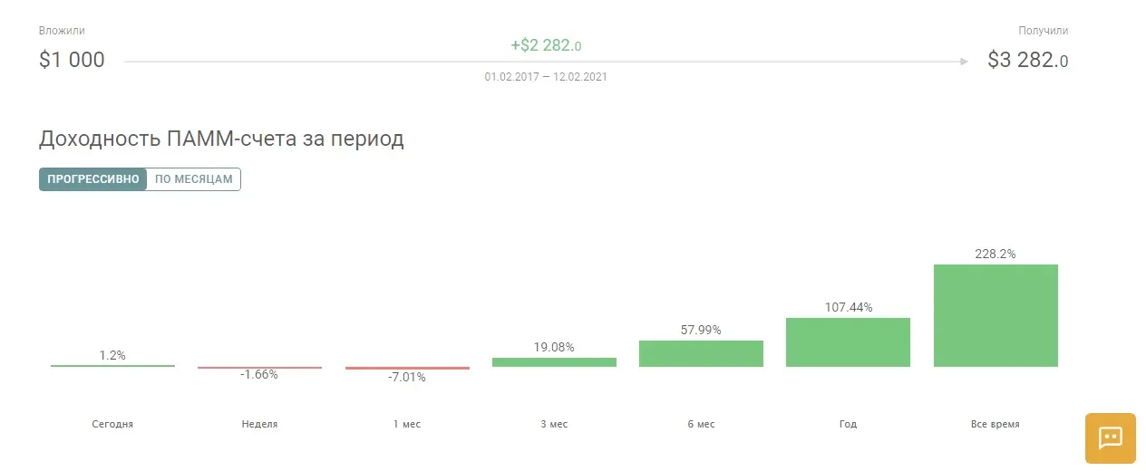 А еще плюс в том, что вы можете следить за сделками трейдера в режиме реального времени. И при необходимости регулировать ситуацию — например, вывести часть денег со счета, если увидите агрессивную торговлю и захотите гарантированно сохранить средства.