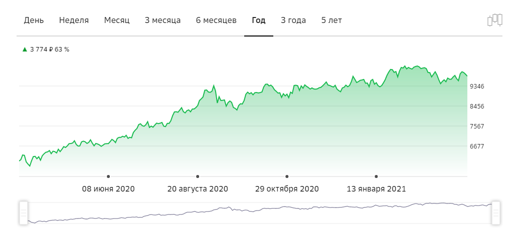 Например, стоимость одного из фондов «Сбербанка» FXIT выросла на 63% за год