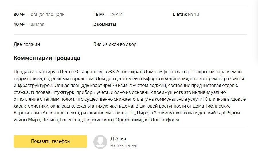 Когда будете создавать объявление, загрузите все фото и укажите в заголовке главные характеристики: количество комнат и жилую площадь. А потом заполните дополнительные поля — у каждой площадки они свои. В описании расскажите обо всем, что не уместилось в стандартные поля. Обычно потенциальным покупателям интересно: